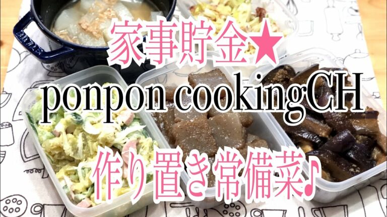 作り置き常備菜★蒟蒻の大蒜醤油炒め・大根とツナの炊いたん・茄子の胡麻酢炒め・長ネギのおかか炒め・薩摩芋サラダ