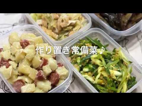 作り置き常備菜★コロコロじゃがいもとウインナーのクミンサラダ・長ネギとツナのターメリック炒め・茄子の胡麻酢炒め・キャベツと油揚げの中華蒸し