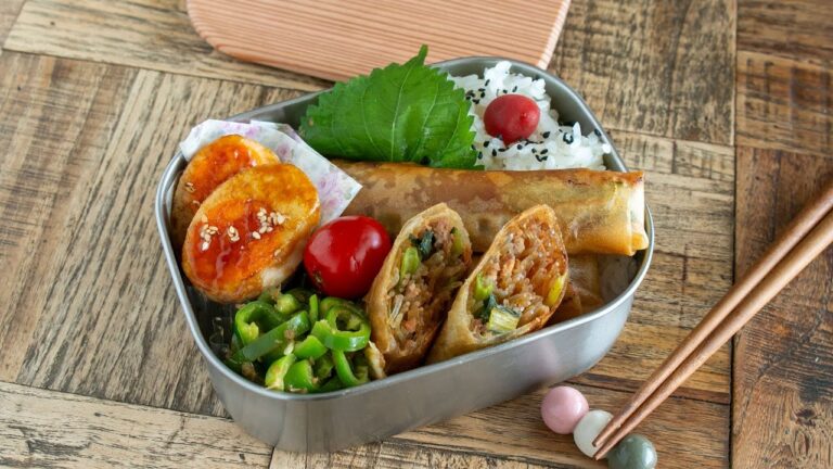 【節約弁当】簡単すぎるのに本格的!!揚げずにパリっと美味しい春巻き弁当bento#989