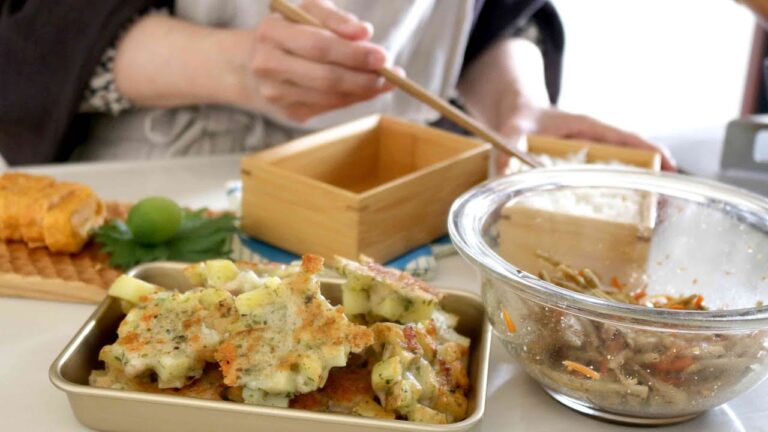 【お弁当作り】カリッカリでうまっ!新じゃがとササミのチーズ焼き弁当bento#880