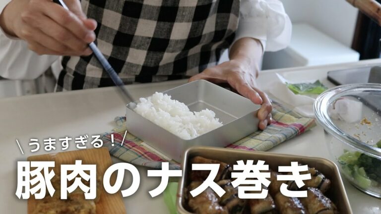 【お弁当作り】ご飯どろぼうなおかず!豚バラ肉のナス巻き弁当bento#743