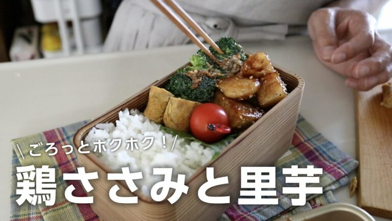 【お弁当作り】ホクホク感がたまらん!鶏のささみと里芋の炒め弁当bento#746