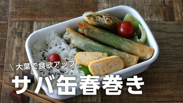 【お弁当作り】巻いて焼くだけ!簡単サバ缶の大葉チーズ春巻き弁当bento#707
