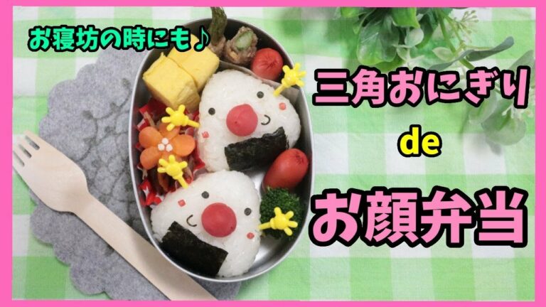 【 キャラ弁・デコ弁 】 お寝坊の時にも♫ 三角おにぎり de お顔 弁当 【 obento / Kyaraben 】サニポケ の 簡単 カワイイ お弁当作り♪